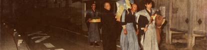 このこと以来、村の娘たちは、顔が目立たぬように手ぬぐいで隠し、ハギレを縫い合わせてこさえた、みすぼらしい衣服を身にまとうようになったのです。